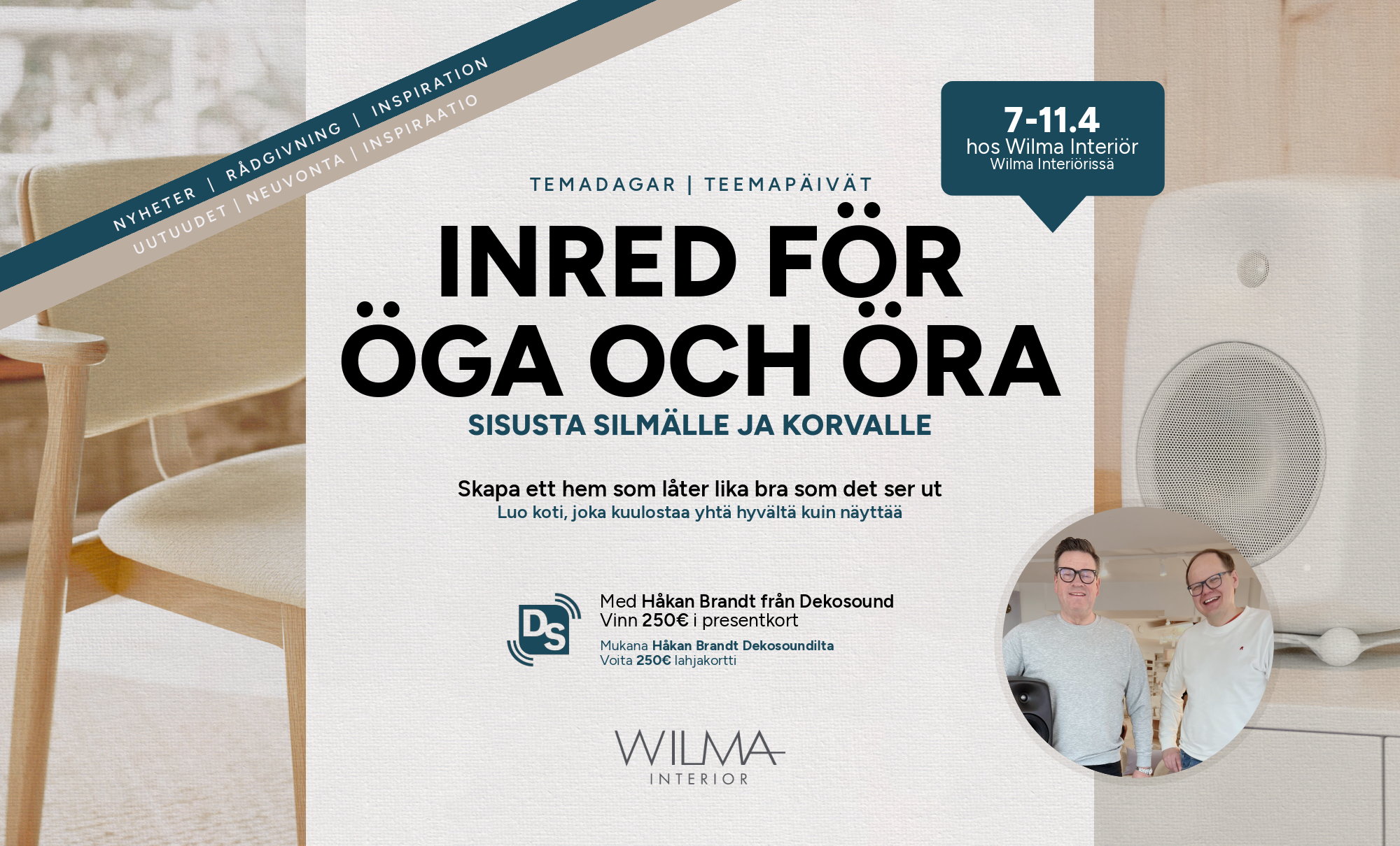 Viimeistele kotisi sisustus äänellä ja kuvalla. Dekosoundin suunnittelemalla järjestelmällä näet suosikkielokuvasi terävänä ja kuulet mielimusiikkisi kirkkaana. Mikään projekti ei ole liian pieni toteutettavaksi. Älä siis epäröi kysyä. Ensin kuuntelemme tarpeesi ja toiveesi. Vasta sen jälkeen teemme suunnitelmat, yhdessä kanssasi. Etkä aina tarvitse suunnitelmaa. Tarvitset vain uusimmat tuotteet – Dekosoundin kilpailukykyisin hinnoin.